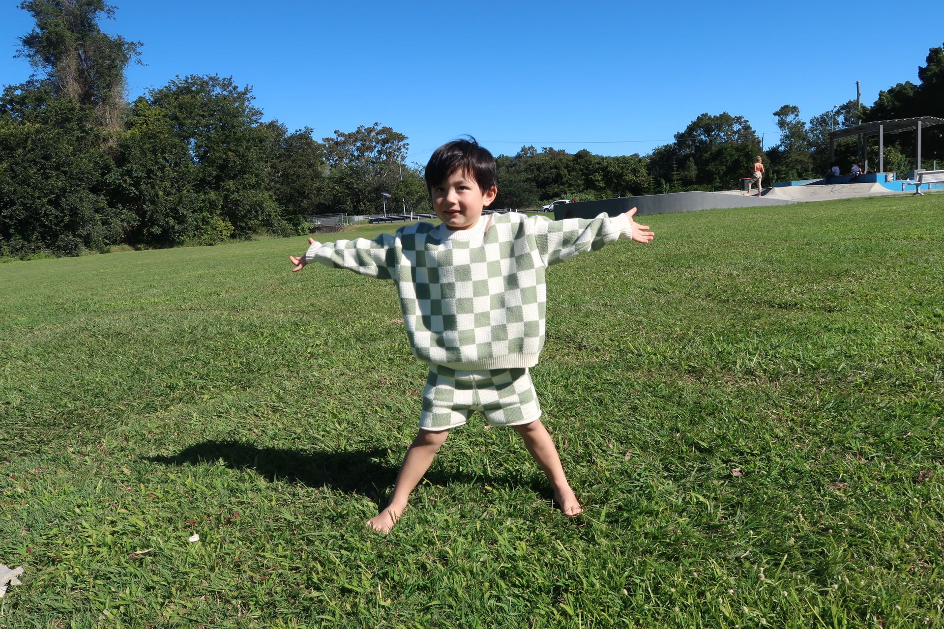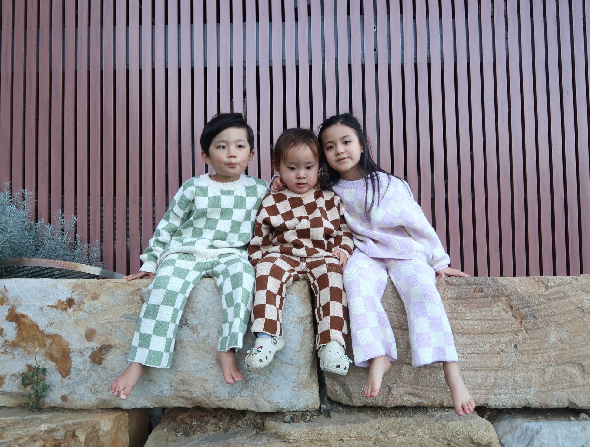 Our knitted checkerboard set, crafted with comfort in mind. These knit sets feature a stretchy fabric for ease of movement and a cozy fit, perfect for your little one's everyday adventures. The oversized design adds a trendy touch while ensuring plenty of room for movement and growth.