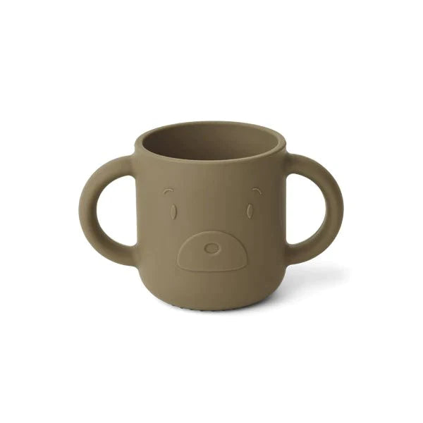 Our finn's drinking cup has easy-grip handles which makes it easier for your baby to drink on its own. Bottom has small studs that make it hard to tip over.Made with durable, soft, long-lasting material for generations to use.