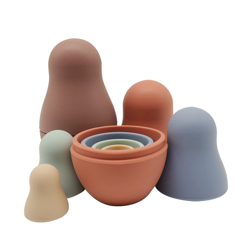 Nesting Doll Toy Food Grade BPA Free Silicone Russian Matryoshka Doll Baby Teether Education Stacking Craft Toys