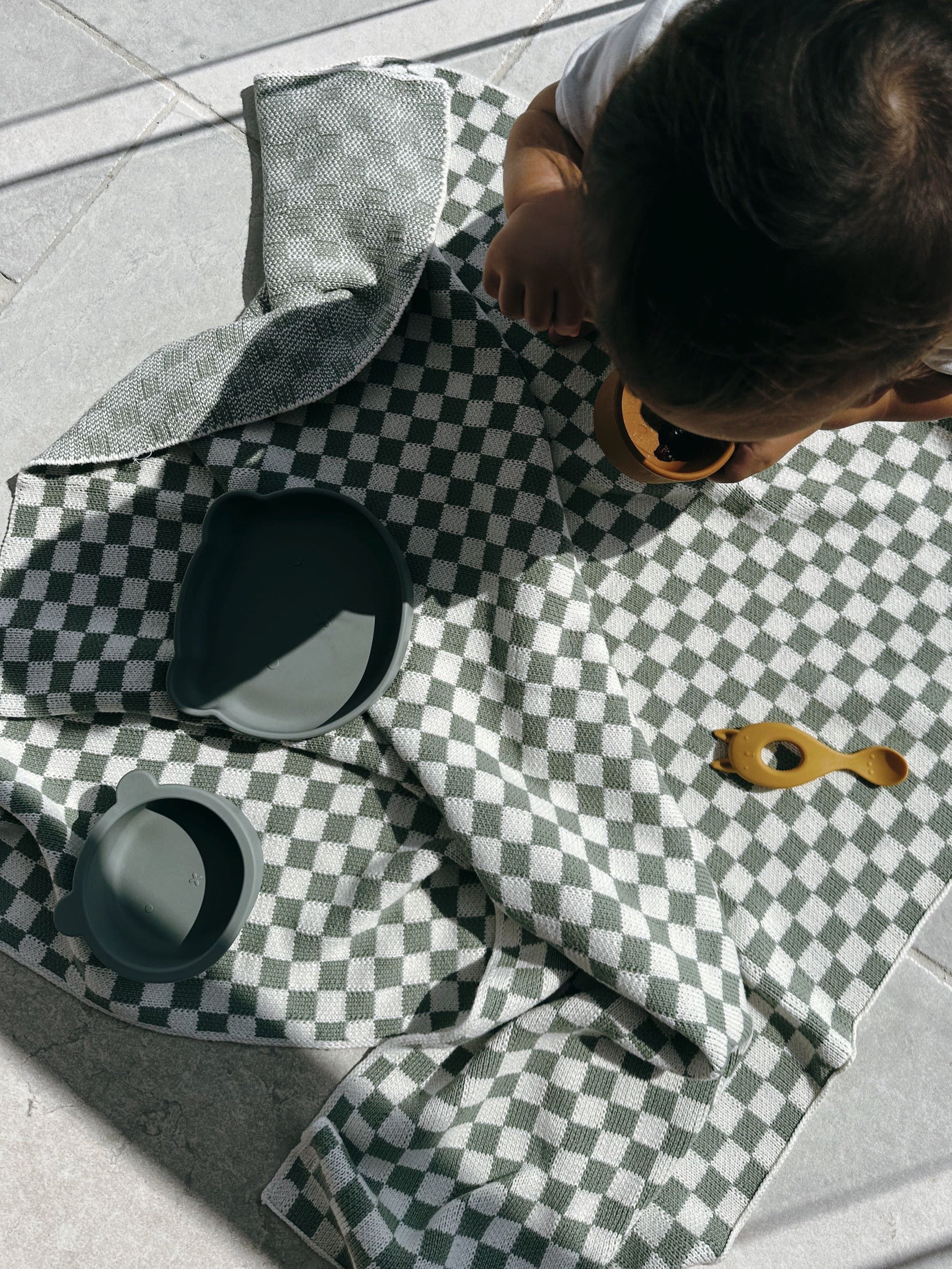 riley checkerboard knit blanket - sage