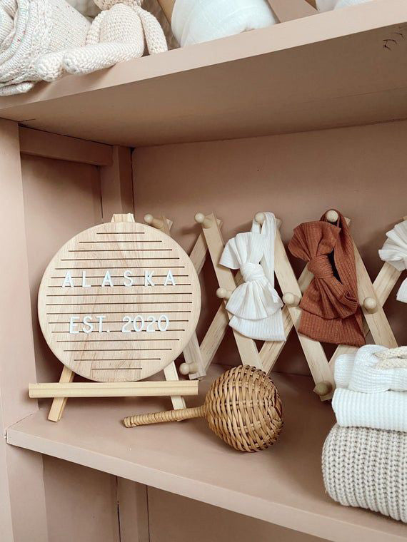 - Letter board includes a hook on back for option of nursery decor